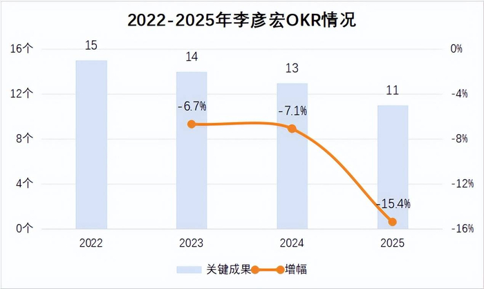 1月上旬,百度自上而下陆续制定了2025年OKR。今年李彦宏的OKR是过去三年以来变化最大的一次:目标极简、关键成果比例降低、承诺型比例大增。