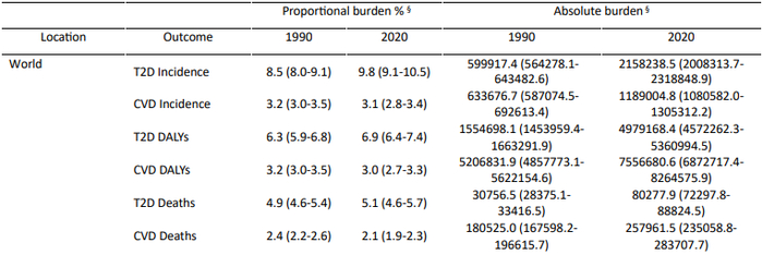 △ 1990年和2020年全球因含糖饮料导致的T2D和CVD负担