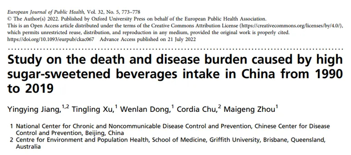 此前,中国疾控中心周脉耕等人在《欧洲公共卫生期刊》期刊上发表了一篇题为 Study on the death and disease burden caused by high sugar-sweetened beverages intake in China from 1990 to 2019 的研究论文。研究显示,1990-2019年,中国因摄入含糖饮料而死亡的人数达到4.6万人,与1990年相比增加了95%,几乎翻了一番。