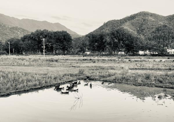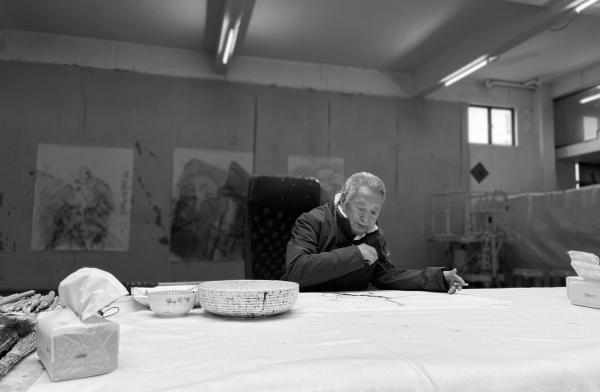 他说:“与山下村的农民生活在一起,看他们种稻子、种玉米,我在作画,活儿不同,但有一点是相同的,都与土地亲近,都是质朴的农民。”