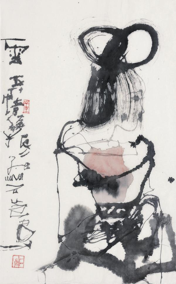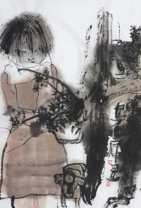 犹记多年前读其水墨人物画时的激动,那样的一根线条,尤其是焦墨,或直来直去,或亦枝亦蔓,或不敷一色,或略施淡彩,然而却皆率性生长,辅以大块的水晕,浓与淡,疏与密,简与繁,互文互见,似乎进入一个自由的王国,的是中国笔墨里的妙章,感受如同十多岁时初读沈从文《边城》一般,山里女儿,如见清溪,让人如醉如痴。
