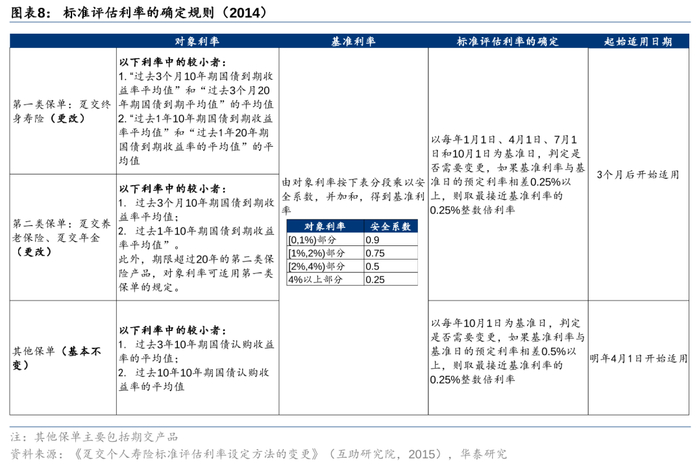 安全系数更加保守。与变更前相比,对象利率4~6%部分的安全率系数从0.5下调到了0.25,标准评估利率的设定与过去相比更加保守(即更低)。