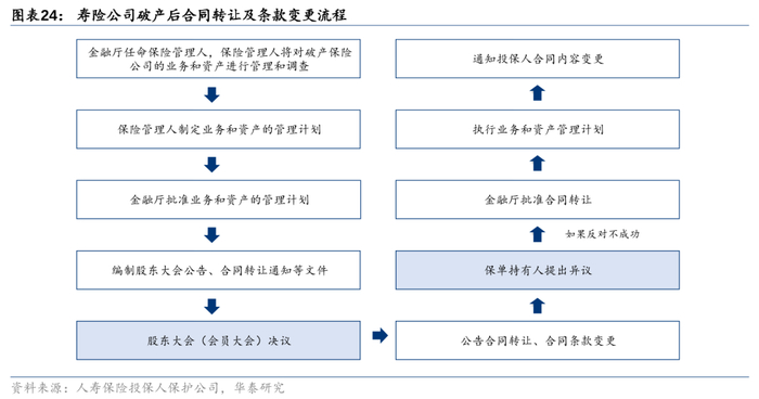 2) 接受保单持有人提出异议:在合同变更方案经会员大会/股东大会通过、行政当局批准后,进入受影响投保人反对环节,持续时间超过一个月。受影响投保人可自由提出反对意见,若超过1/10的投保人反对,方案将被否决。