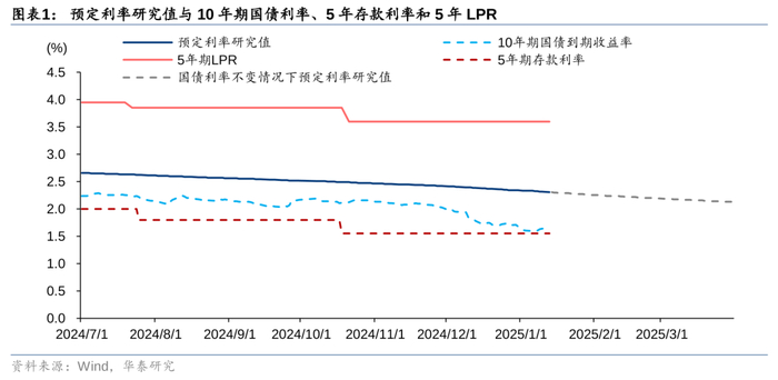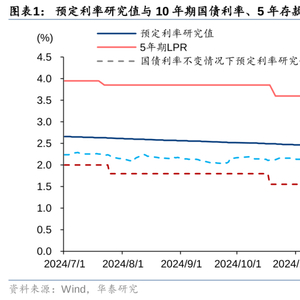 下一个观测点是4月初公布的1Q25的研究值。如果5年期LPR和存款利率到3月底不调整,研究值的变动就取决于10年期国债利率的变化。即使10年期国债利率在1Q25维持不变,考虑平滑效应,我们认为1Q25研究值可能下降到2.15%以下,和预定利率的差距触及25bps阈值。