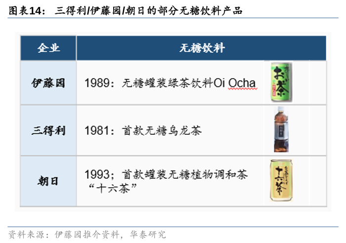 1)亚洲邻国依靠强势品类出口:以中国为例,1997年三得利乌龙茶产品进入中国,系最早在中国开辟无糖茶饮料赛道的品牌,凭借口味独特和差异化卖点,三得利成功把握先机、实现单品突围;