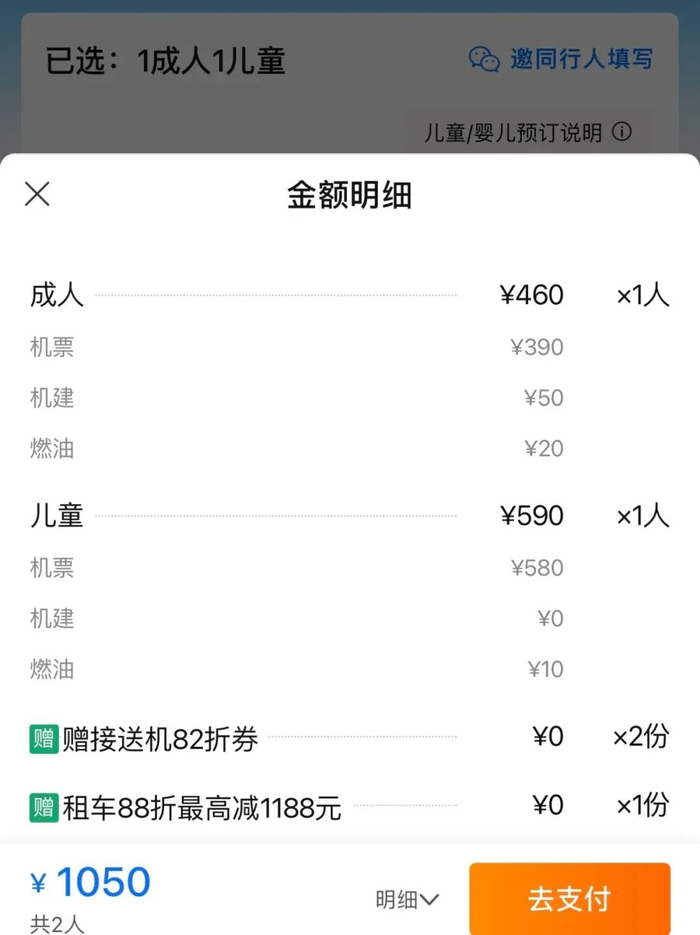 关于儿童飞机票的票价、机建燃油费,携程有时会不讲武德,突然割用户一刀。