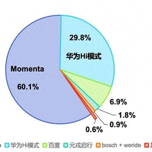 近日,第三方研究机构佐思汽研发布2024城市NOA产研报告。报告显示,2024年城市NOA实现规模化“上车”,助力这一趋势的国内第三方智驾供应商主要有5家,分别是Momenta、华为Hi模式、Bosch+WeRide、百度和元戎启行。5家累计市场份额占比超99%,其中Momenta市场占比达到60.1%。