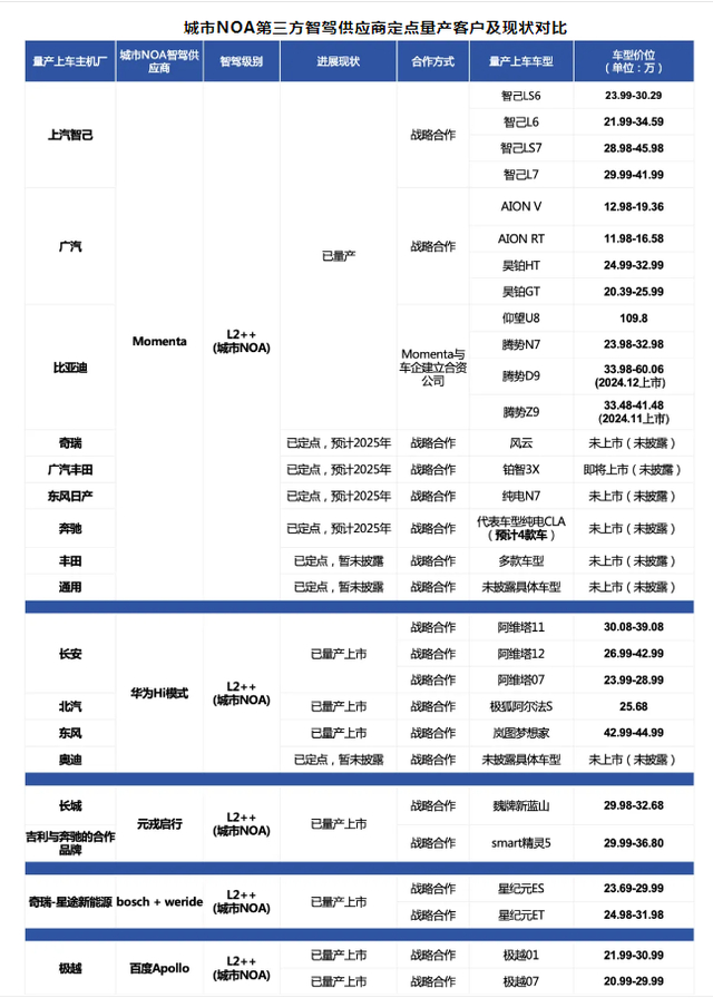 佐思汽研的研究报告对车企和第三方智驾供应商之间的双赢合作模式进行了解析。报告指出,对于车企而言,选择成熟的高阶智驾供应商以快速实现城市NOA功能,是增强自身竞争力的重要路径;而对于头部高阶智驾供应商而言,与知名车企携手实现量产落地,能够巩固其在市场中的技术领先地位和市场认知度。
