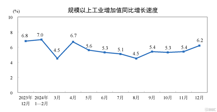 2024年12月份规模以上工业增加值增长6.2%