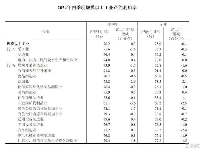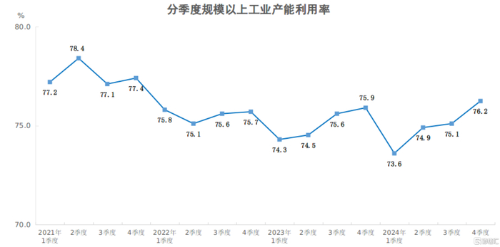 2024年四季度全国规模以上工业产能利用率为76.2%