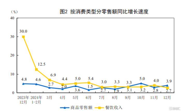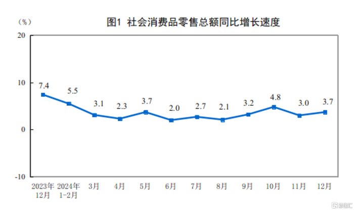 2024年12月份社会消费品零售总额增长3.7%