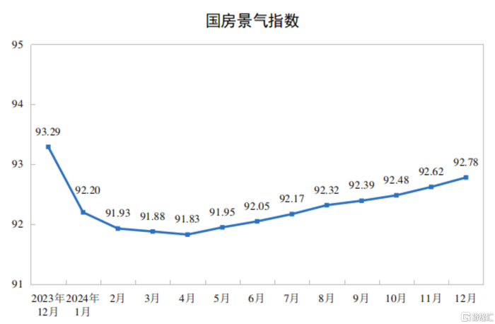 2024年12月份,房地产开发景气指数(简称“国房景气指数”)为92.78。