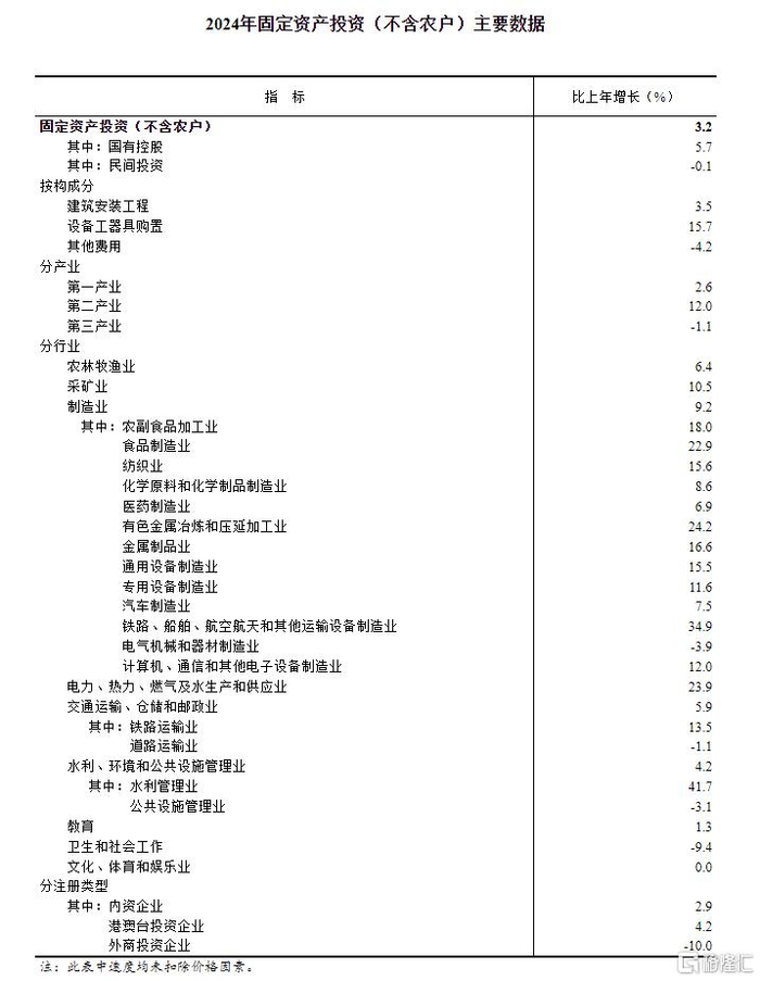 2024年全国固定资产投资增长3.2%