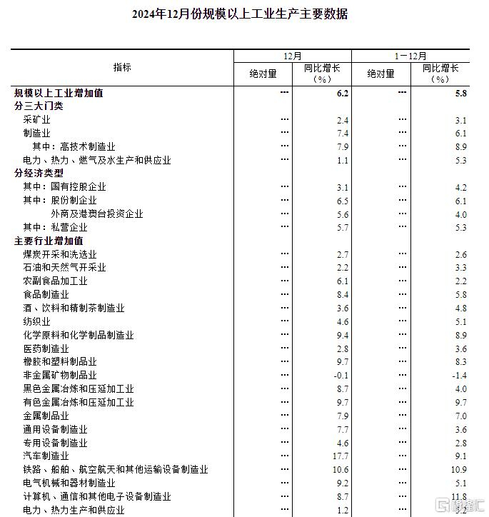 稳中有进!2024年12月规模以上工业增加值增长6.2%,社零增长3.7%