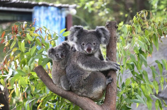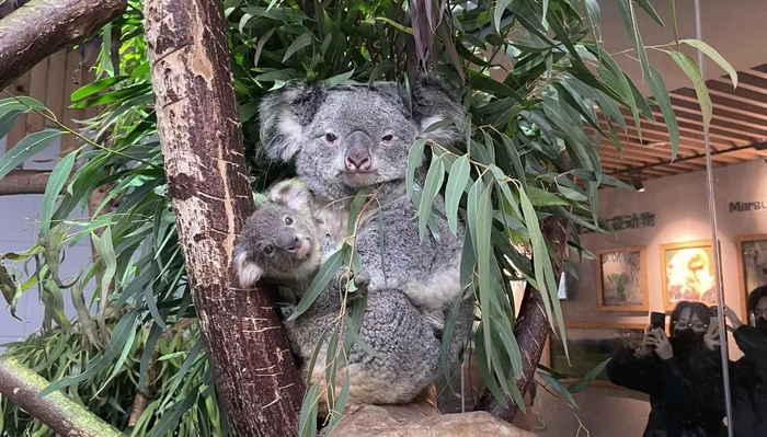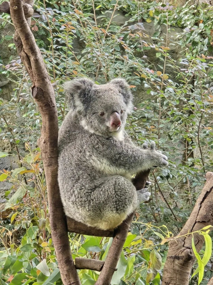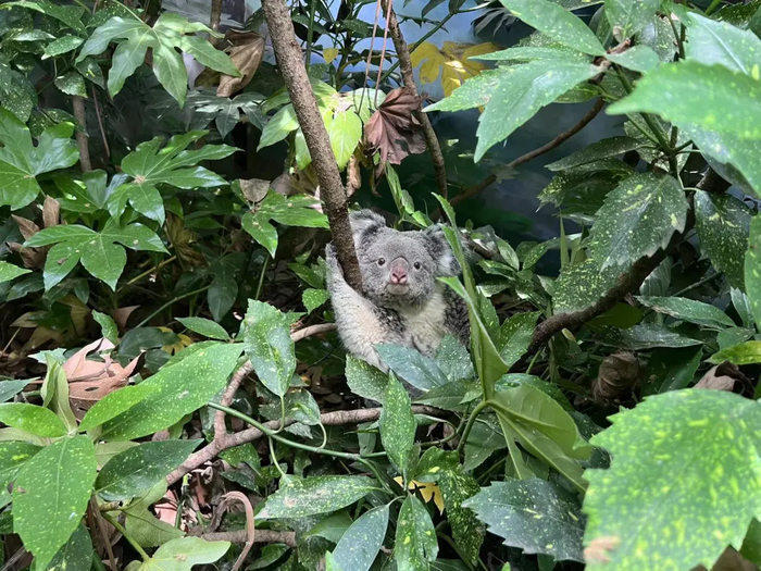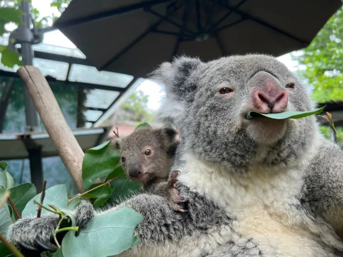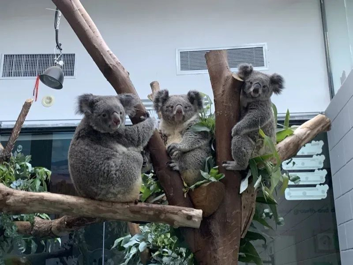 像考拉的个性一样,平淡的小日子也迎来了稳稳的幸福。2018年5月下旬,饲养员开始观察到茉莉的育儿袋有胎动,为了保证第一次妊娠和育幼的茉莉母子健康,我们将展厅的参观面拉上了帘子,为他们母子营造了一个安静的环境。8月20日,茉莉梧桐的第一个宝贝“柠檬”正式与游客见面。那是我们第一次见到刚出袋活动的考拉宝宝,柠檬就像是迷你版的茉莉,清秀可爱,又多了一些稚嫩。茉莉背着柠檬在树杈上晒太阳的画面让我们感叹太过美好。接着柚子、金桔、橙子、青柑、六宝相继出生,简单的二人世界渐渐变成了热闹的小家庭,爱和温柔充满了考拉家的花园。