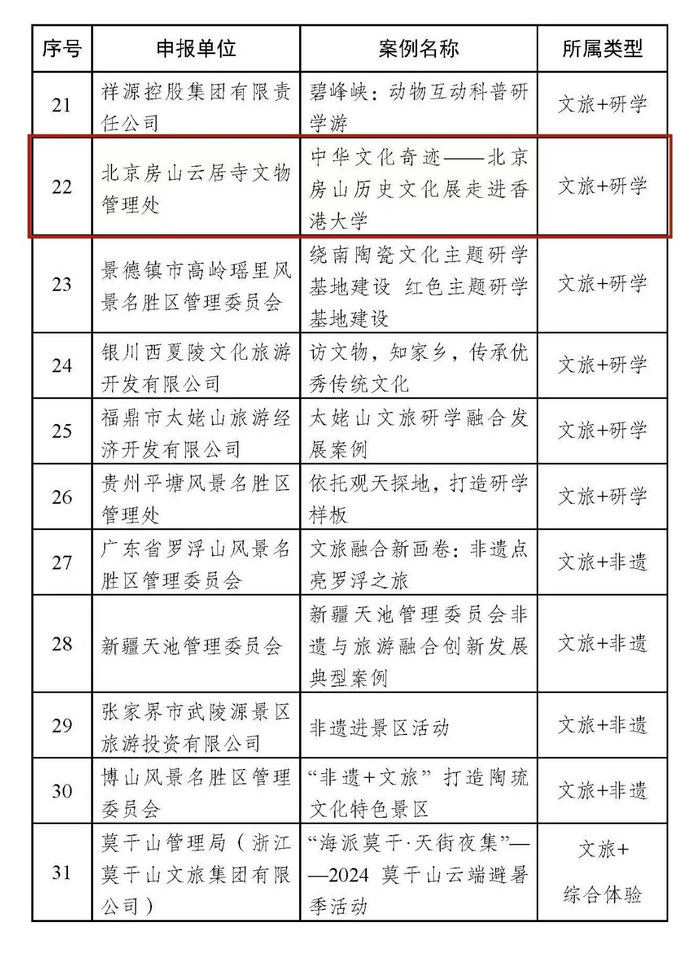 风景名胜区文旅融合典型实践案例征集活动于2024年11月初启动,共收到68家单位报送的120个案例资料。北京房山云居寺文物管理处申报的“文旅+研学”类案例《中华文化奇迹——北京房山云居寺历史文化展》入选。该案例借助文化深度体验,在世界各地传播中华优秀传统文化,增强中华文明的传播力、影响力。