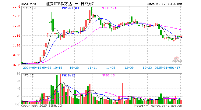 证券ETF易方达(512570)涨0.55%,半日成交额974.48万元