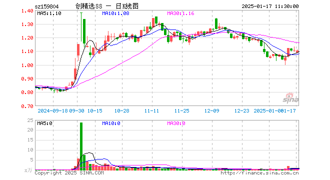 1月17日,截止午间收盘,创中盘88ETF(159804)跌0.27%,报1.102元,成交额59.06万元。创中盘88ETF(159804)重仓股方面,南大光电截止午盘涨1.82%,掌趣科技涨0.00%,卫宁健康涨1.24%,全志科技涨4.62%,长信科技涨0.32%,南都电源跌0.18%,捷成股份跌1.54%,英科医疗涨1.47%,鹏辉能源涨0.18%,博雅生物涨0.14%。
