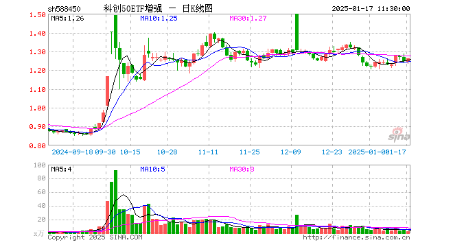 科创50ETF增强(588450)涨1.28%,半日成交额331.32万元