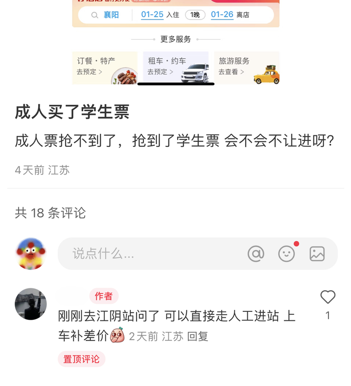 近日,小红书有博主介绍,乘客可以通过“伪装”成学生身份在12306购票软件上抢购春运车票的攻略在网络上流传。帖子内容显示,乘客可以先以学生身份购票,且选择不核验学生资质的方式买票,随后到站内补票为成人票。