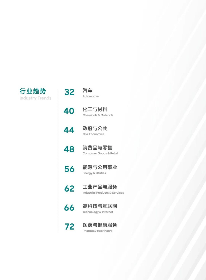 该报告基于罗兰贝格专家团队对各行业的长期观察与深入研究,为包括汽车、化工与材料、政府与公共、消费品与零售、能源与公用事业、工业产品与服务、医药与健康服务、高科技与互联网等关键领域提供趋势解析与前沿洞察。