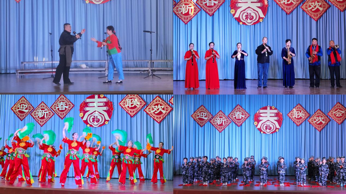 联欢会在欢快的舞蹈《新春乐》中拉开帷幕,舞者们身着鲜艳的服饰,用灵动的舞姿展现出对新春的美好期盼,瞬间点燃了现场的气氛。干休所的老干部们也不甘示弱,带来了声情并茂的诗朗诵《心中有信仰,脚下有力量》,他们用铿锵有力的声音,回顾往昔岁月,展望美好未来,赢得了现场观众的阵阵掌声。