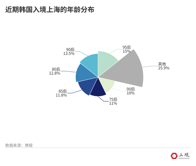 携程数据显示,韩国入境上海的游客中,95后、00后等年轻群体相比2019年占比提升明显,均提升3个百分点以上。来上海游玩的韩国人更趋年轻化,这一定程度上也证实了这座城市的魅力和活力。