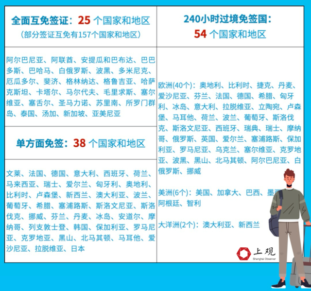 2024年12月17日,过境免签政策再次扩容,将过境免签外国人在境内停留时间由原72小时和144小时均延长为240小时(10天),同时新增21个口岸为过境免签人员入出境口岸,并进一步扩大停留活动区域。不完全统计,自2023年3月以来,我国发布对外国免签政策18条。全面互免签证国家和地区共25个,240小时过境签免签国家和地区54个。
