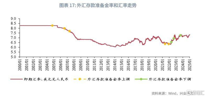 对于2025年的货币政策而言,稳汇率和降准降息操作可能交替出现,在维护外汇市场稳定的同时,通过降低银行负债成本打开利率政策空间。2025年1月14日,人民银行在国新办新闻发布会上指出,“我们将综合施策拓展利率政策空间……今年,我们将继续加强这方面的工作,进一步降低银行整体负债成本,缓解银行净息差压力……坚决防范汇率超调风险,保持人民币汇率在合理均衡水平上的基本稳定,为根据国内经济金融形势需要进行调控奠定良好基础”。