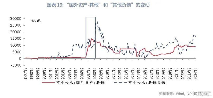 2007年至2008年,人民银行曾经要求商业银行以外币缴纳人民币存款准备金,并在后续允许用人民币置换以外币缴纳的准备金,这种操作对人民币流动性总量直接产生影响。2007年7月30日,人民银行宣布自2007年8月15日上调人民币存款准备金率,并且要求总部驻京的全国性商业银行以外币缴纳上调的人民币存款准备金,后来扩大到所有的全国性商业银行;这项操作同时体现为央行资产负债表的“国外资产-其他”和“其他负债”科目同时上升(肖萌,2015)。在上述操作中,一方面存款准备金率的提升,起到了人民币流动性收紧的作用;另一方面,如果以外币缴纳准备金导致商业银行在央行结汇减少或者向央行购汇,也会通过外汇占款科目的变动回笼人民币流动性。2022年11月,外汇占款增加636亿元;2023年1月,央行在答记者问[6]中指出,2008年以后,商业银行自愿将上述外汇资金逐步换回人民币形式来交存,近期央行报表中“国外资产-外汇”增加,是因为部分商业银行继续置换所剩外汇资金。由此,在将存款准备金由外币置换回人民币的过程中,实现了外汇流动性的投放和人民币流动性的回笼。