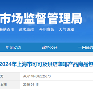 近期,上海市市场监督管理局对本市可可及烘焙咖啡产品进行了商品包装监督抽查。本次抽查了25批次产品,经检验,1批次不合格。