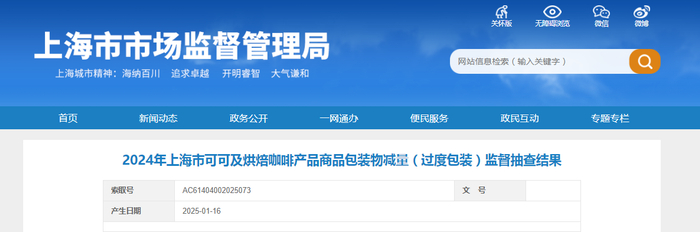 2024年上海市可可及烘焙咖啡产品商品包装物减量(过度包装)监督抽查结果