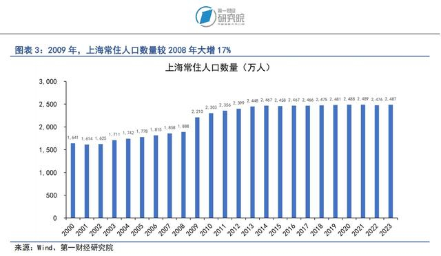 第二,上海城市更新不断升级、逐渐放开户籍政策限制,吸引海内外人才流入。2008年之后,全国新一轮城镇化开启,上海也相应放开户籍政策限制。2009年是上海常住人口大幅增加的一年,人口数量由2008年的1888万人上升至2210万人,一年内增幅达到17%,此后上海常住人口数量不断上升,直到触及2500万人的常住人口“红线”。上海作为全国一线城市,若一下子放开户籍限制政策,可能在基础设施、民生保障等方面遇到难以承压的情况,因此上海在放开户籍政策方面呈现出“小步慢走”的特征,但放开的步伐从未停止。上海常住人口的增加带来了更加年轻化、多元化的人口结构,并催生出了新的消费需求和场景,激发新的城市活力。