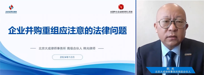 北京大成律师事务所高级合伙人韩光将从法律视角介绍企业并购重组中交易结构及流程设计、法律文件与谈判、重组后整合等法律问题;