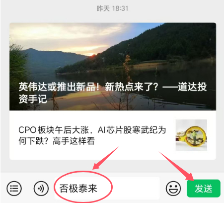 大家可以关注微信公众号“道达号”,然后在道达号的对话框里输入“否极泰来”这四个字并发送,即可领取行业板块名单。注意:不要输错字,不然不会自动回复名单。