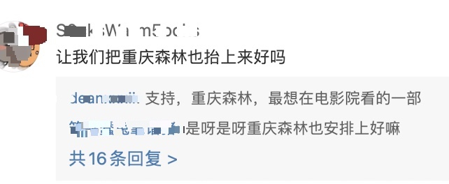 记者注意到,在评论区不少网友表示期待,还有人喊话《重庆森林》《春光乍泄》等影片重映。