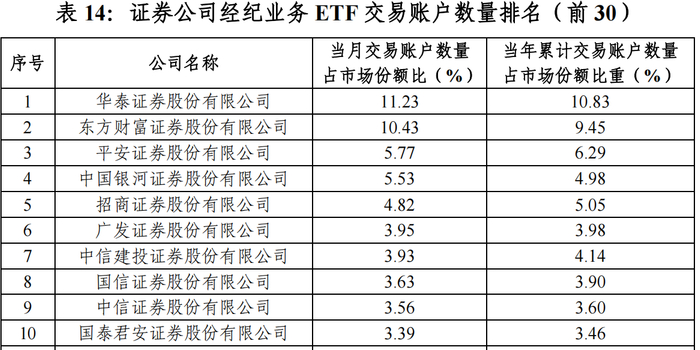 交易账户数量排名:头部格局稳定,华泰证券和东方财富优势突出