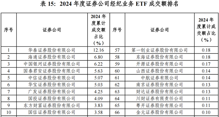 沪市ETF2024年度累计成交额数据显示,华泰证券以12.16%的占比高居榜首,市占率远远超出了二三名的海通证券(6.80%)和银河证券(6.22%)。