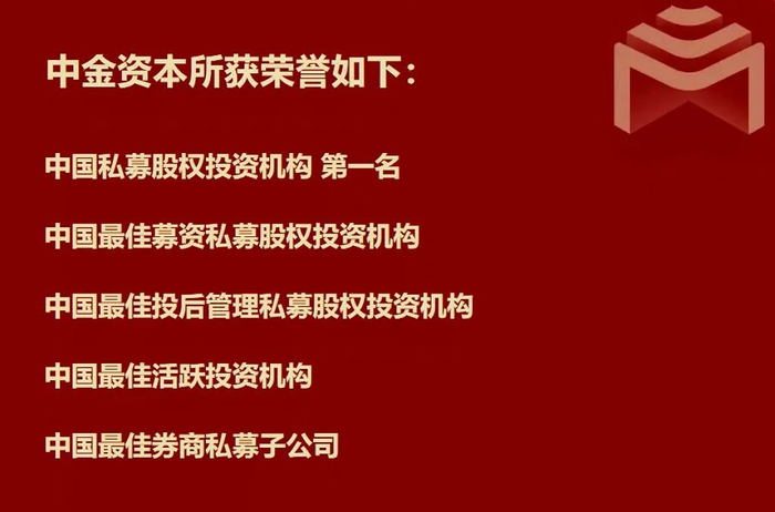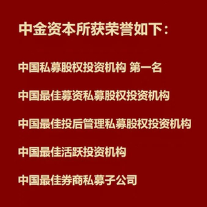 中金资本在本次评选中所获奖项荣誉,再次显示了业界对中金资本的关注与鼓励。中金资本将自觉肩负时代使命,努力打造成为中国领先的、具有世界影响力的私募股权投资基金管理平台。
