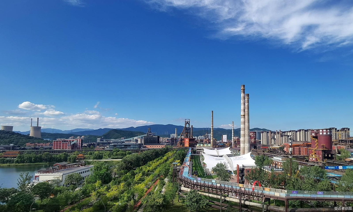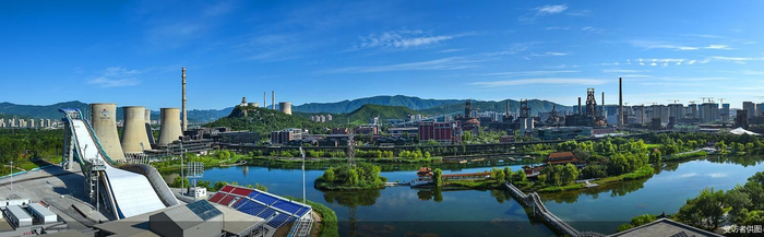 在长安街西延长线与永定河绿色生态走廊交汇之处,见证中国钢铁工业百年变迁的首钢园,在蓝天与阳光的映衬下熠熠生辉。