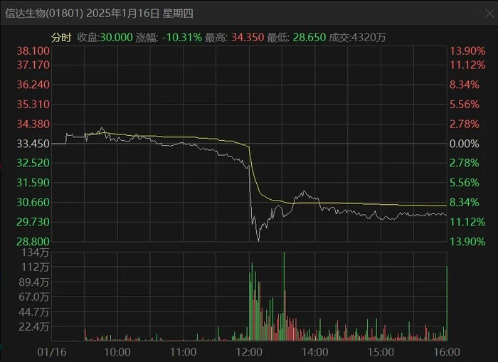 (信达生物16日午后暴跌)
