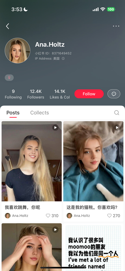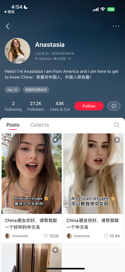对普通的国内运营者来说,小红书起号非常困难。但对于这些老外来说,是轻而易举就实现了。