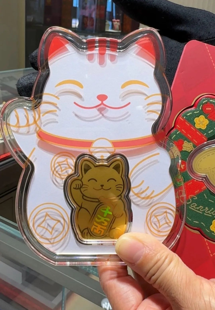 记者注意到,今年的黄金贴不仅沿袭招财猫、锦鲤、葫芦等传统祈福元素设计,还紧密贴合年轻群体的审美偏好,融入“公主请发财”“泼天的富贵”“搞钱要紧”“招财锦鲤”等颇具情绪价值的网络流行语。