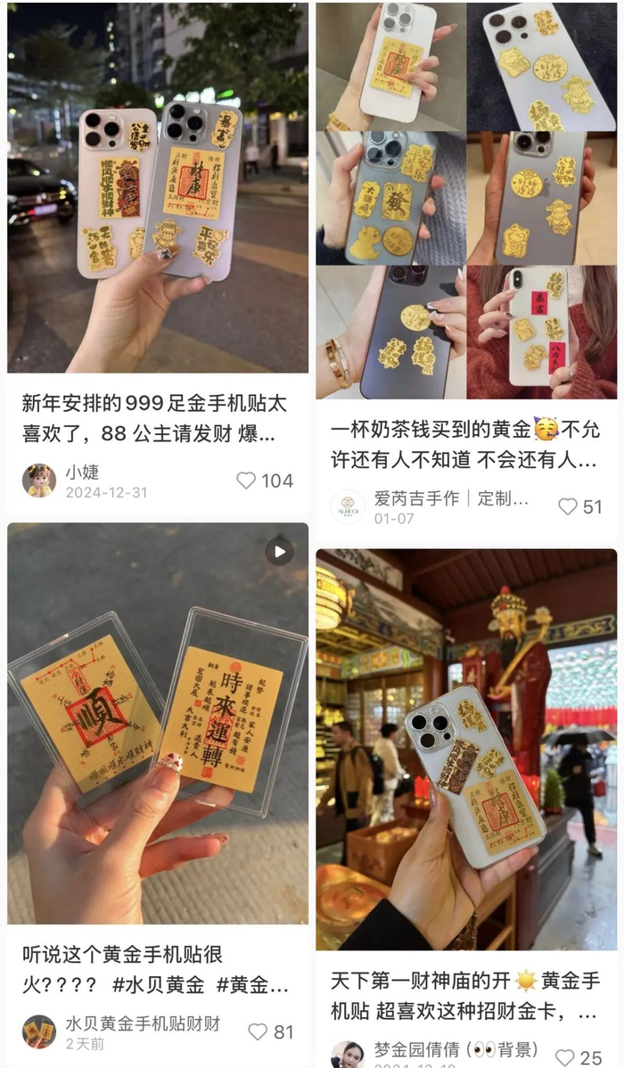 人们为何突然爱上了黄金贴?除了超小克重的轻量化设计降低了购买门槛,“新年好彩头”式的情绪消费也是令人“上头”的理由之一。