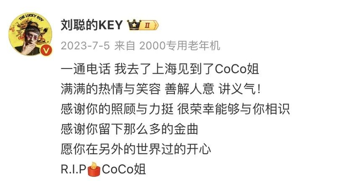 李玟去世当天,刘聪也曾发文悼念李玟,回忆了和李玟的相识经历,“愿你在另外的世界过得开心。”