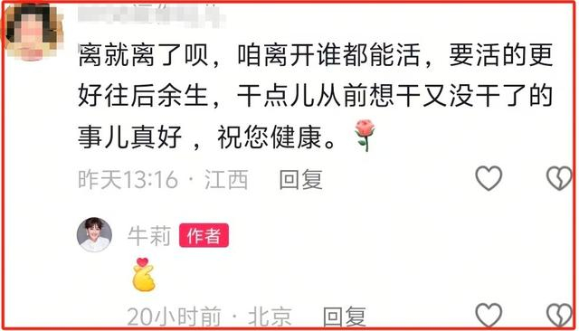 有人直言 “离就离了呗,一个人更好”,而牛莉竟然点赞了这条评论,这一举动无疑坐实了她婚姻出现问题的猜测。此后,她还点赞了多个与离婚相关的评论,让这场婚姻疑云愈发浓重。