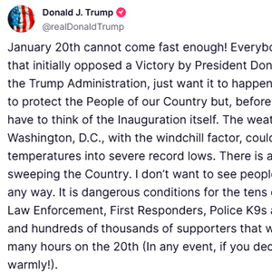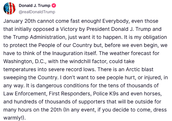 40年来首次!特朗普就职典礼将因严寒天气改为室内举行