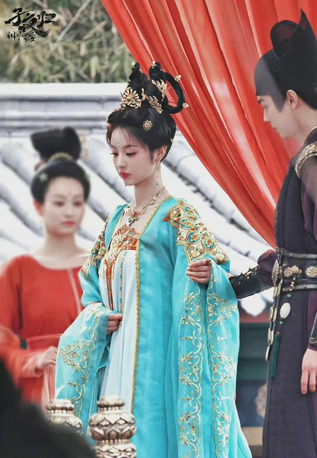 随着剧情的发展,后期成熟起来的她,扮相变得更为华贵。妆容也变得精致浓艳,眼影的色彩更加丰富,眼线更加细长,唇色也更加鲜艳。但这种变化并没有让她显得突兀,反而有一种恰到好处的美感。她在剧中的每一个眼神、每一个动作,都将角色的情感细腻地表达出来,再加上那贴合角色的唐妆,让她成功撑起了整个造型。