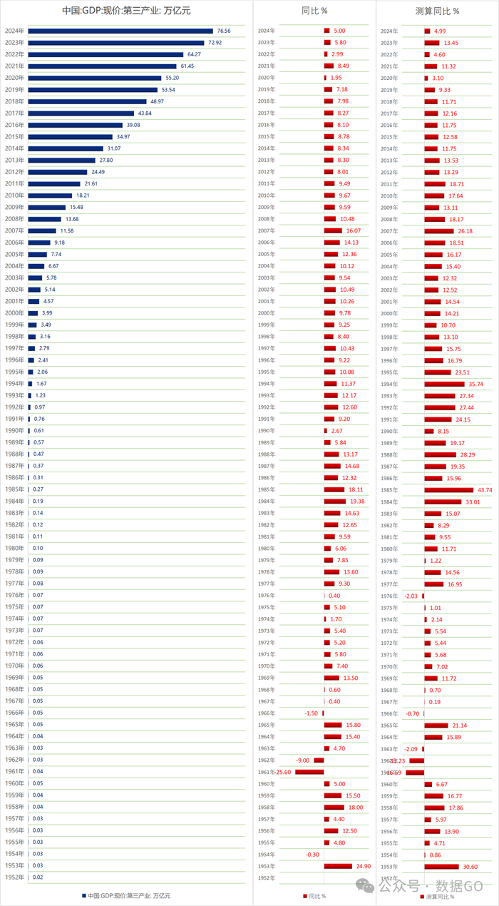2024年,第二产业GDP是76.56万亿,同比增长5%,测算同比4.99%。