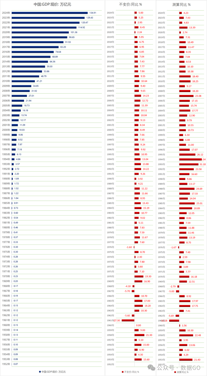 中国历年GDP(1952-2024)